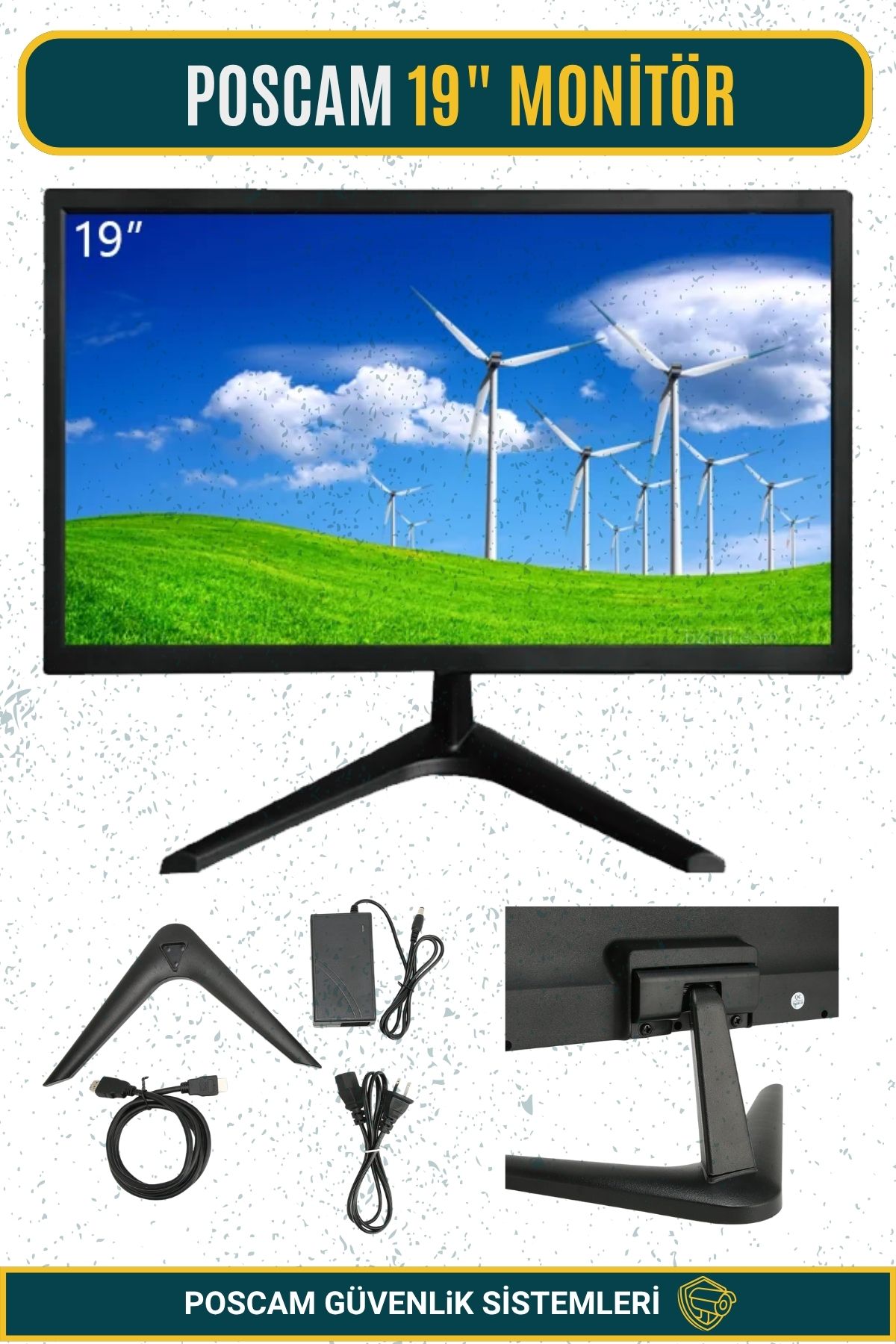 POSCAM GP19WH 19 İnç HD LED Monitör, 60Hz yenileme hızı ve 5 ms tepki süresi ile akıcı ve net görüntü performansı sunar. 16:10 görüntü oranı sayesinde daha geniş dikey görüş alanı sağlar. HDMI, VGA ve AV girişleri ile hem güvenlik sistemleri hem ofis kullanımı için ideal ve ekonomik bir monitör çözümüdür.