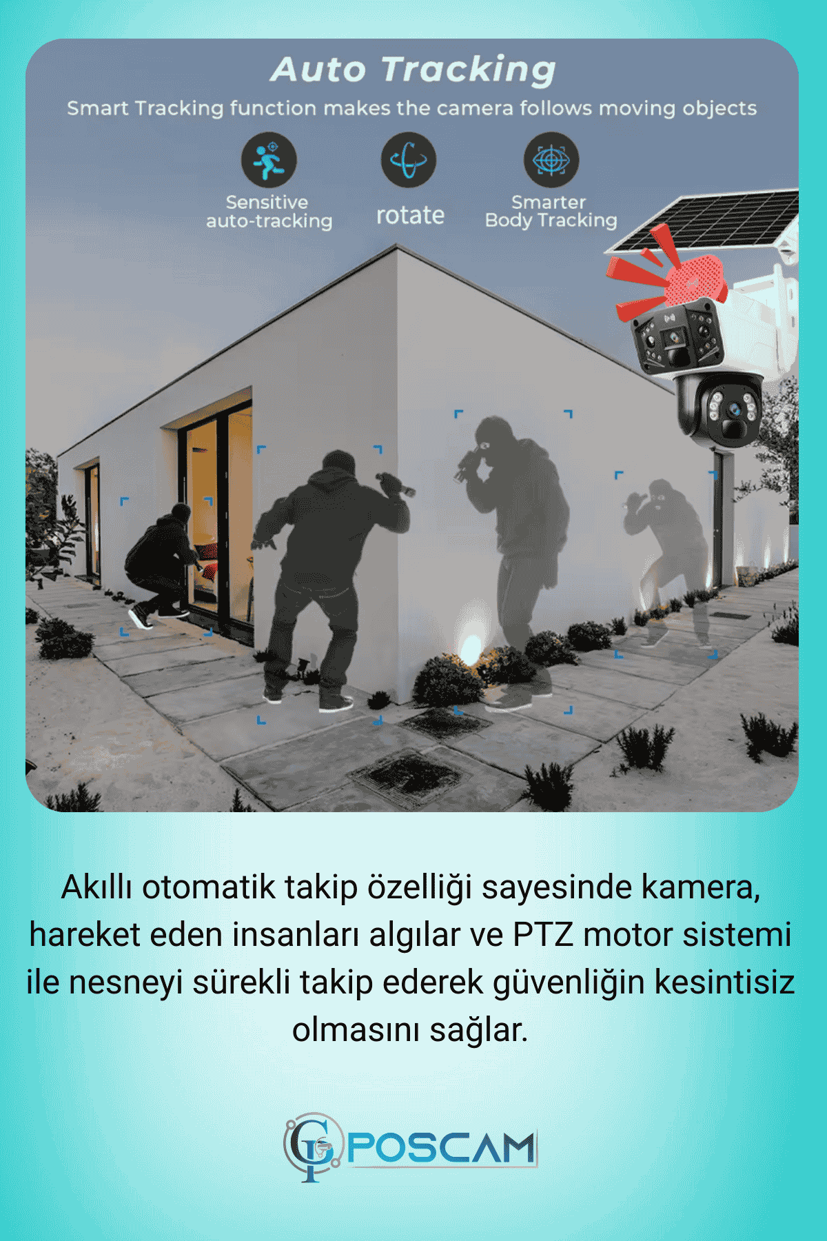 2 Kameralı 3+3MP Full HD 4G Solar PTZ Güvenlik Kamerası