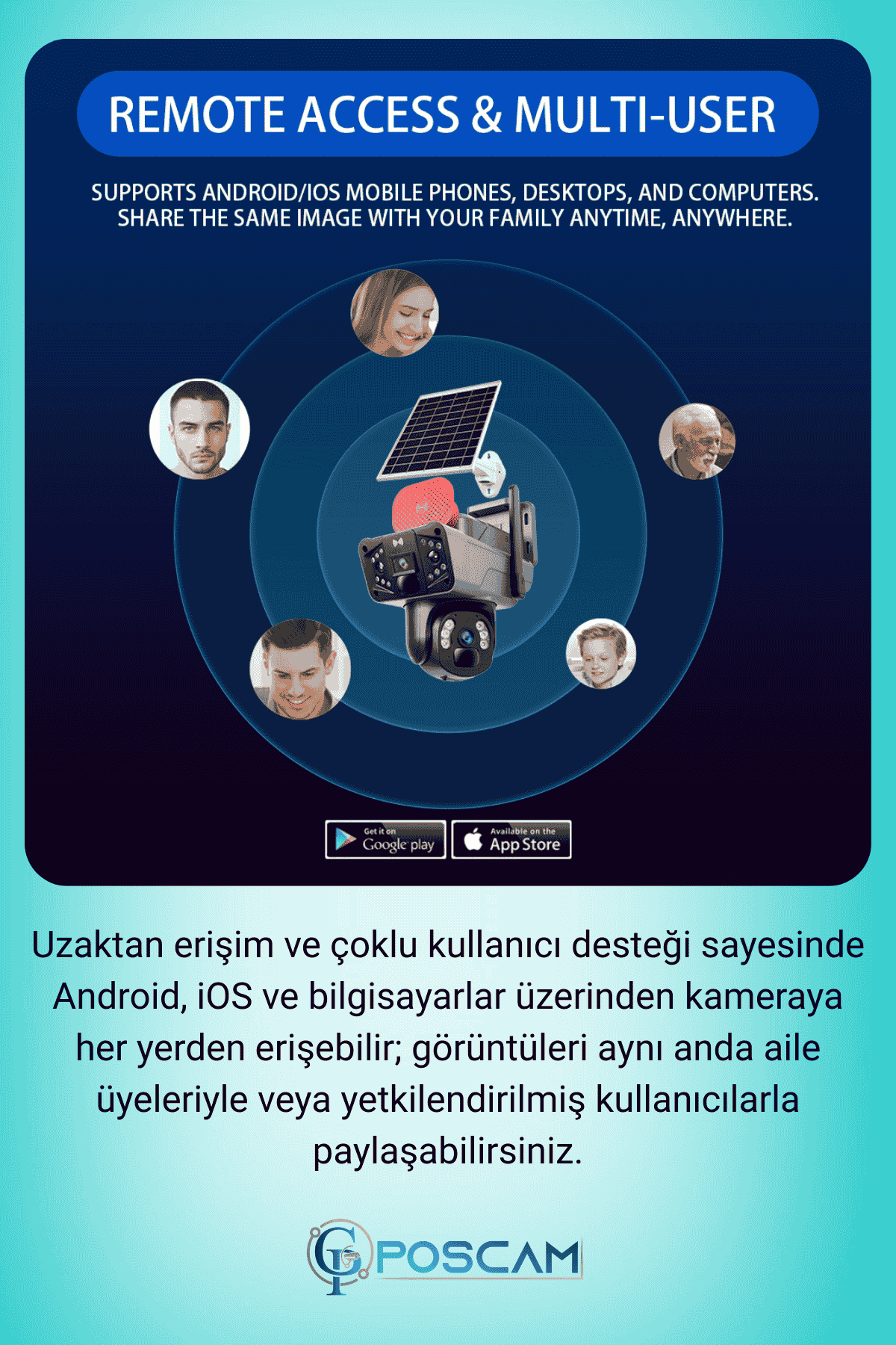 Bu gelişmiş 4G solar PTZ güvenlik kamerası, çift kameralı yapısı ve yüksek çözünürlüklü görüntü performansı ile dış mekân güvenliği için güçlü ve güvenilir bir çözüm sunar. 3+3MP olmak üzere toplam 6MP görüntü kalitesi sayesinde geniş alanlar net ve detaylı şekilde izlenebilir. 4G SIM kart desteği sayesinde Wi-Fi veya kablolu internet gerektirmeden çalışır ve güneş enerjili sistemi ile elektrik altyapısına ihtiyaç duymaz.