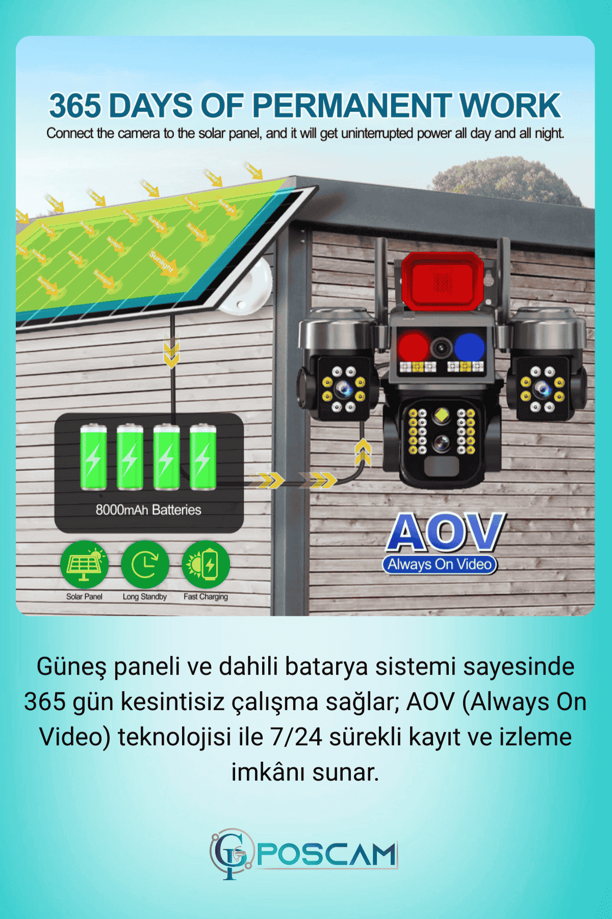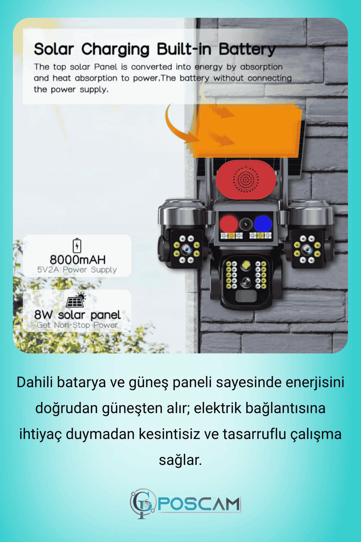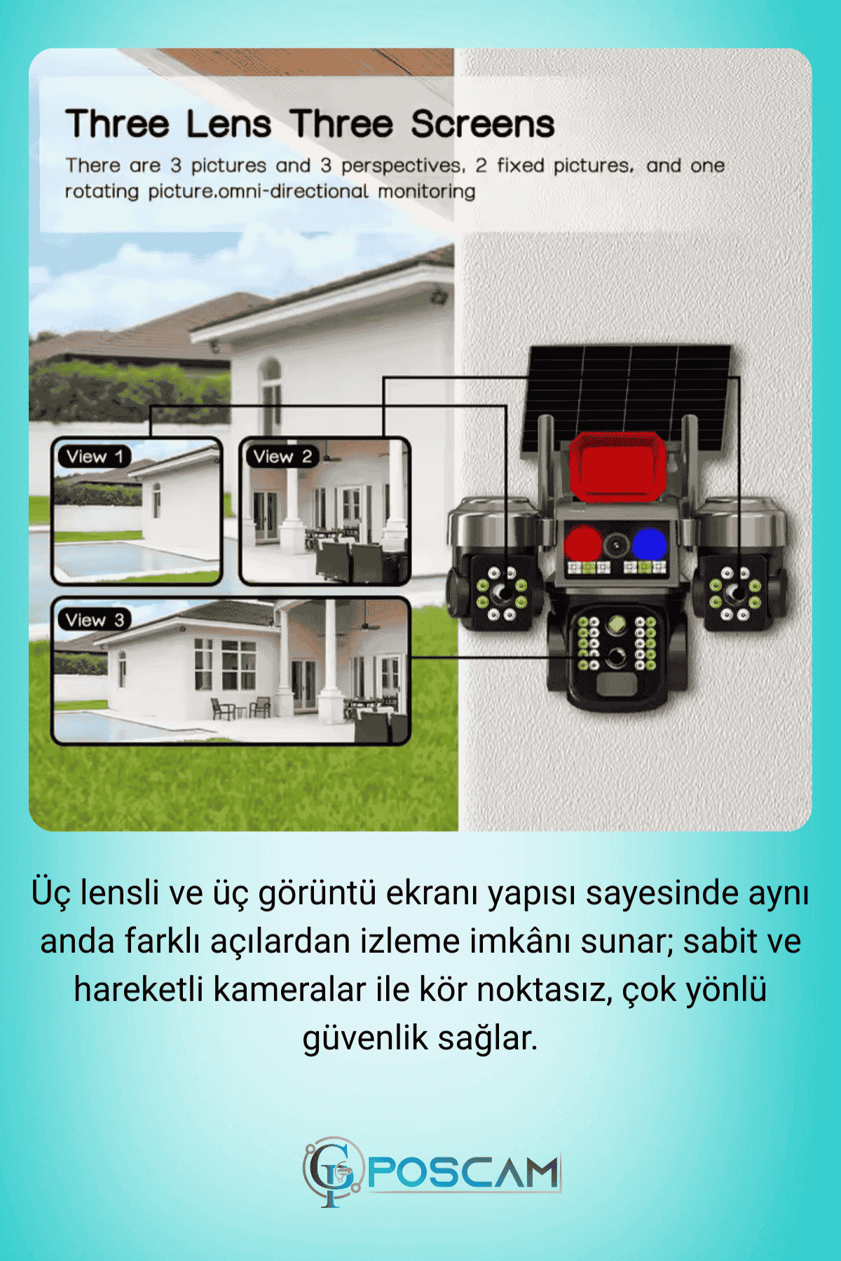 Poscam 3 Kameralı 6MP Full HD 4G Solar Güvenlik Kamerası